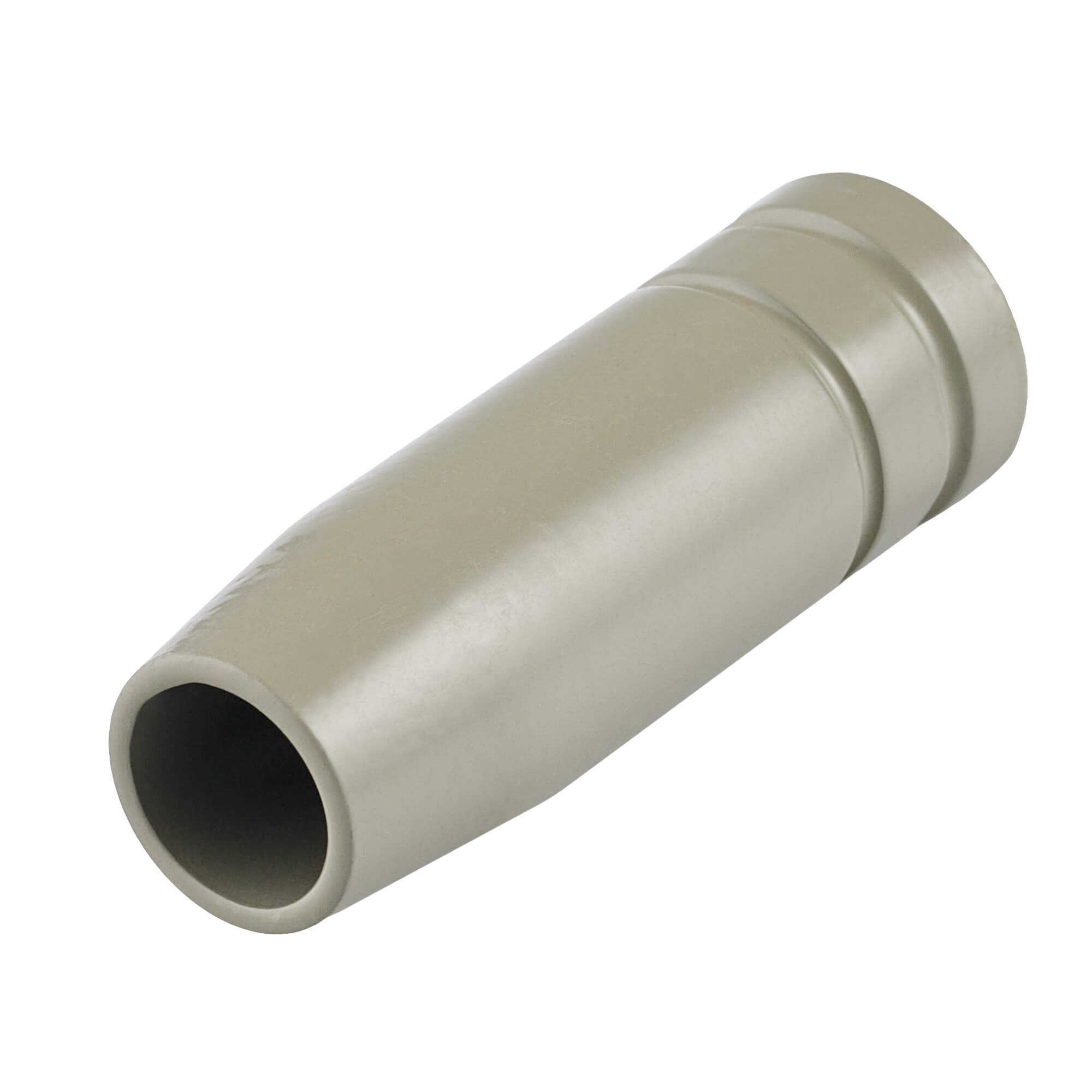Газораспределительное сопло с керамическим покрытием для полуавтоматических горелок MIG MP 15 всех серий. Выходной внутренний диаметр сопла 12 мм. Сопло используется для равномерного распределения газового потока и для защиты сварочного наконечника от механического воздействия или случайного соприкосновения со свариваемым изделием.Сопло изготовлено из меди, сверху нанесён керамический слой, который работает как электрический и термический изолятор поверхности.Керамическое покрытие наносится специальным технологическим процессом, образуется гомогенный ровный слой, рассчитанный на промышленную эксплуатацию такого газораспределительного сопла. Керамический слой состоит из броннитрида (бор нитрид, BN).Отличительная особенность сопла CRM1512 – это керамическое покрытие:Керамическое покрытие создаёт термобарьер, так как керамика выдерживает очень высокие температуры, не расплавляется и не деформируется.Покрытие препятствует прилипанию сварочных брызг за счёт очень гладкой поверхности. Брызги либо отскакивают, либо слабо держатся и легко счищаются.Из-за отсутствия налипших брызг металла формируется более стабильный газовый поток и дуга. Увеличивается продолжительность работ без остановки и последующей очистки сопла и комплектующих для горелки MIG.Керамический слой заметно увеличивает ресурс сопла и расходных частей сварочной горелки.Область применения сопел с керамическим покрытием:Узкощелевое сваривание труб, толстых стенок. Орбитальная сварка, где сопло или наконечник может задеть стенку свариваемого изделия. В таком случае керамическое покрытие выступает в роли диэлектрика, защищает от коротких замыканий, снижает риск «поджигания» дуги по боковой стенке и медных включений в металл шва.Сварка порошковой проволокой, где нужно увеличить токи и скорость без потери качества корня.Автоматизированные линии и роботизация, где критичны длительные остановки рабочего процесса и присутствует минимальное обслуживание сварочных горелок.